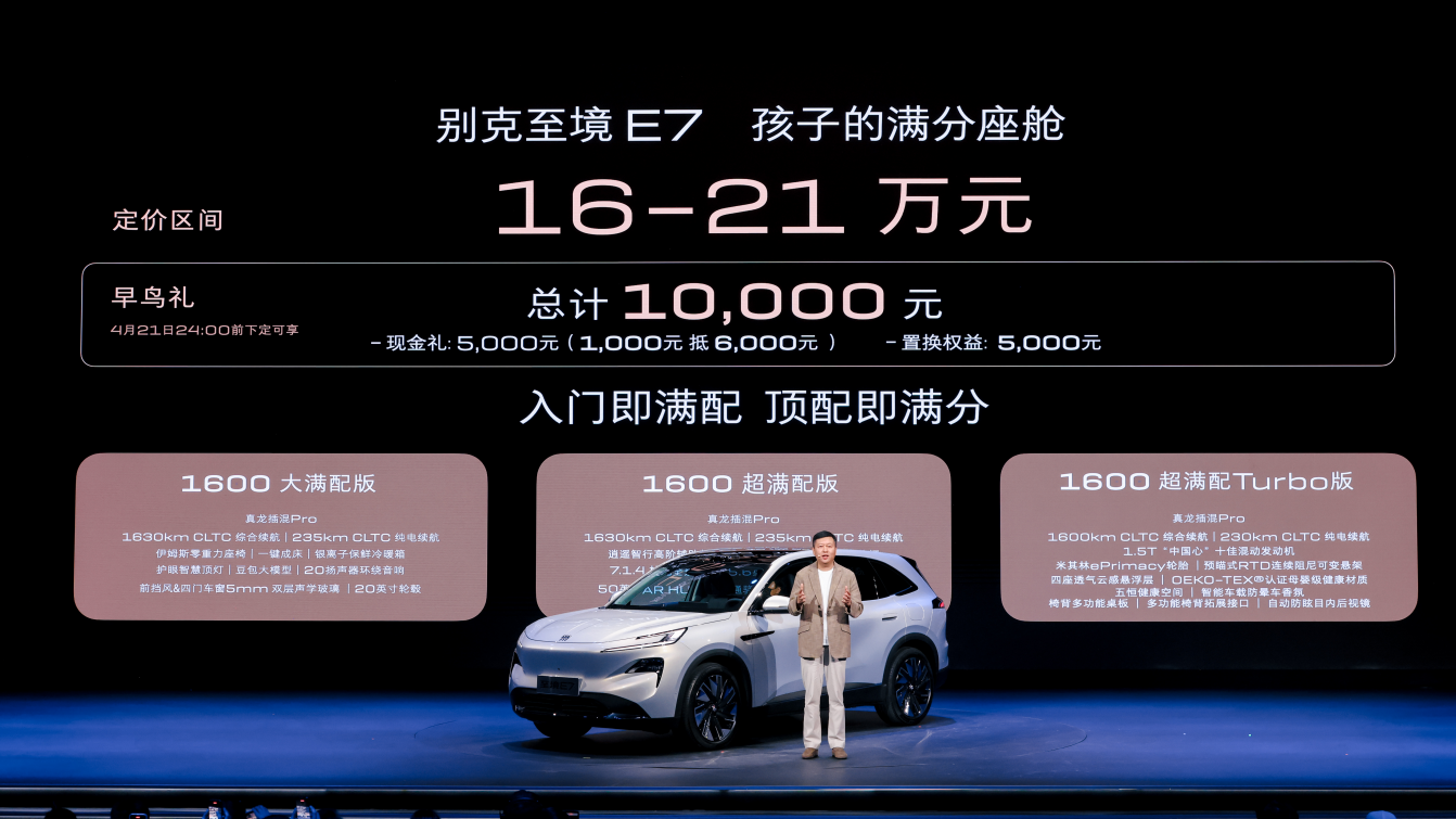 行业里都清楚,合资品牌做新能源,以前要么价格虚高、配置缩水,要么就是油改电凑数,根本没拿出真本事,而至境E7这次完全换了打法,没有入门丐版套路,三款车型全系标配42项高价值配置,零重力座椅、方向盘加热、电动尾门、座椅通风加热这些以前30万级车型才有的配置,16万起步就给你,再叠加1000元抵6000元现金礼和5000元置换权益,早鸟期直接省下1万元,诚意直接拉满。对比同价位国产车型,别克有百年造车底蕴、底盘调校功底和售后网络优势,对比同级别合资新能源,价格直接下探5万以上,这种错位竞争,摆明了是要重新定义家用插混SUV的价值底线。
